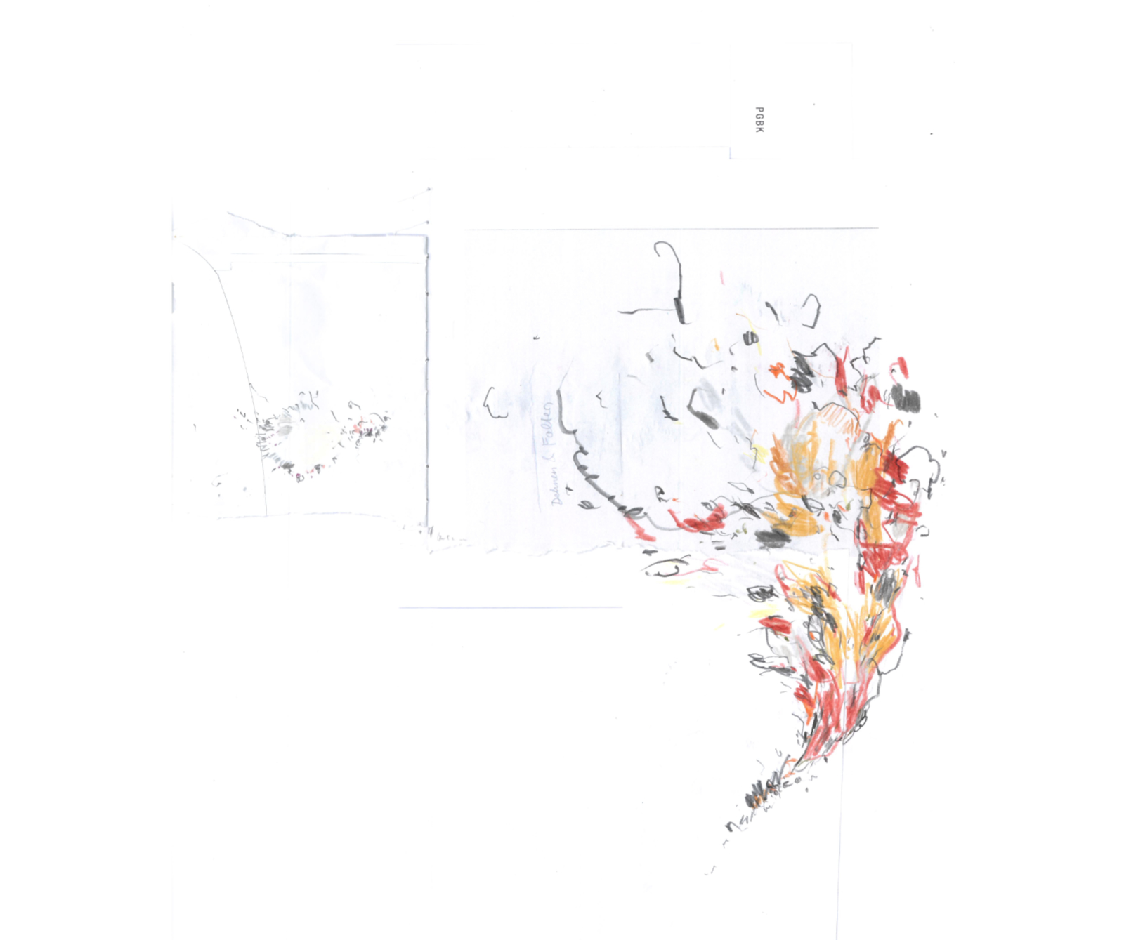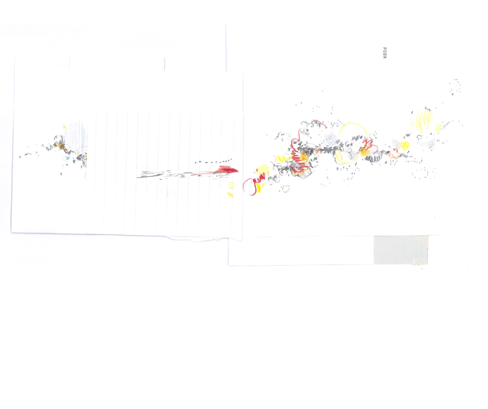 Zeichenheft 2025, Heft selbst gebunden, Buntstiftzeichnung, 27 x 72 cm