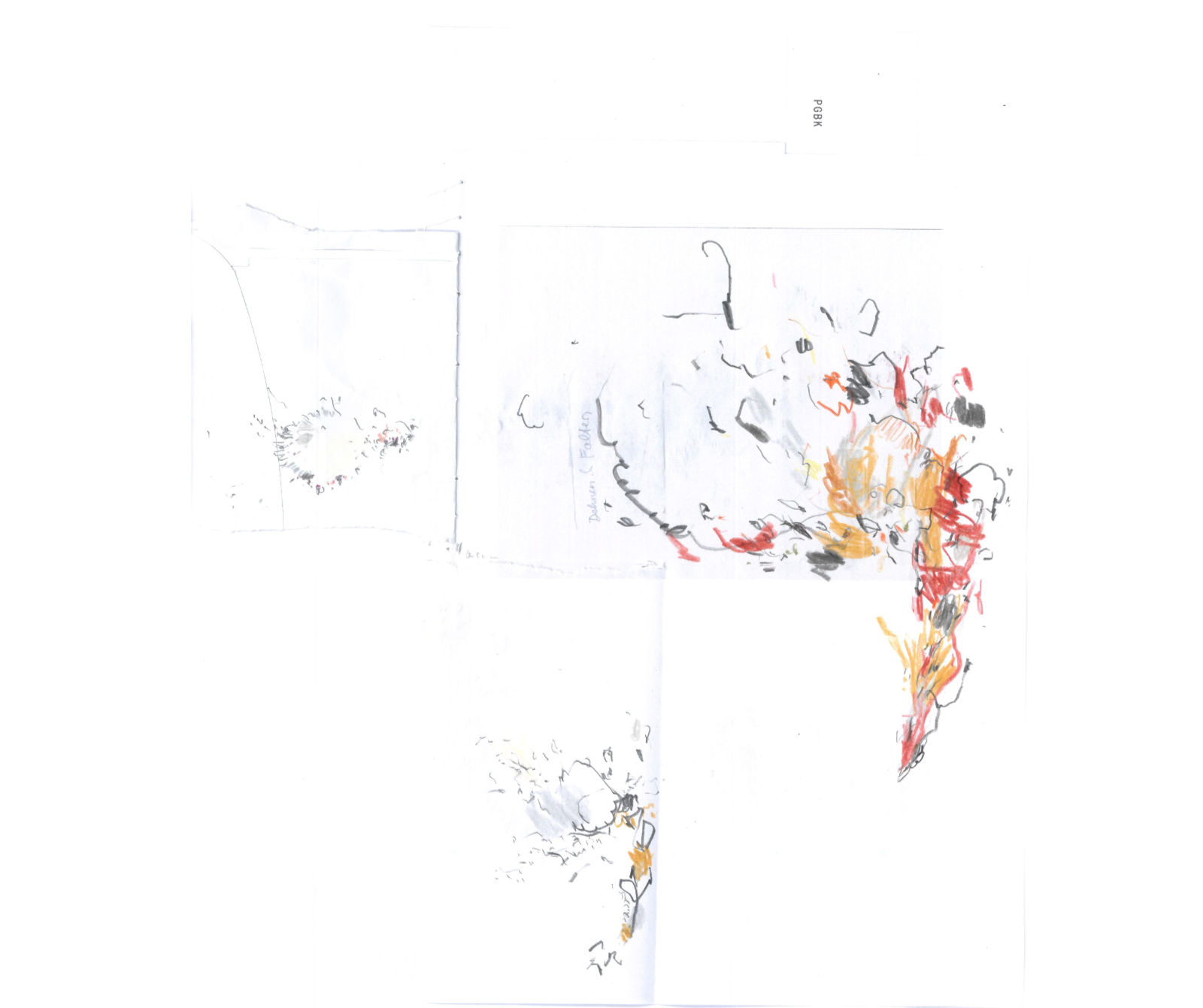 Zeichenheft 2025, Heft selbst gebunden, Buntstiftzeichnungen, 32 x 49 cm