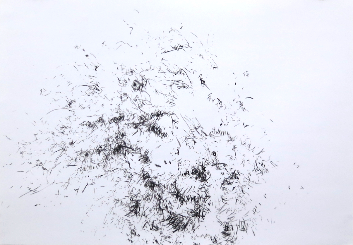 Zeichnung 2015, Bleistift auf Transparentpapier und weißer Papierrolle, 70 x 174 cm